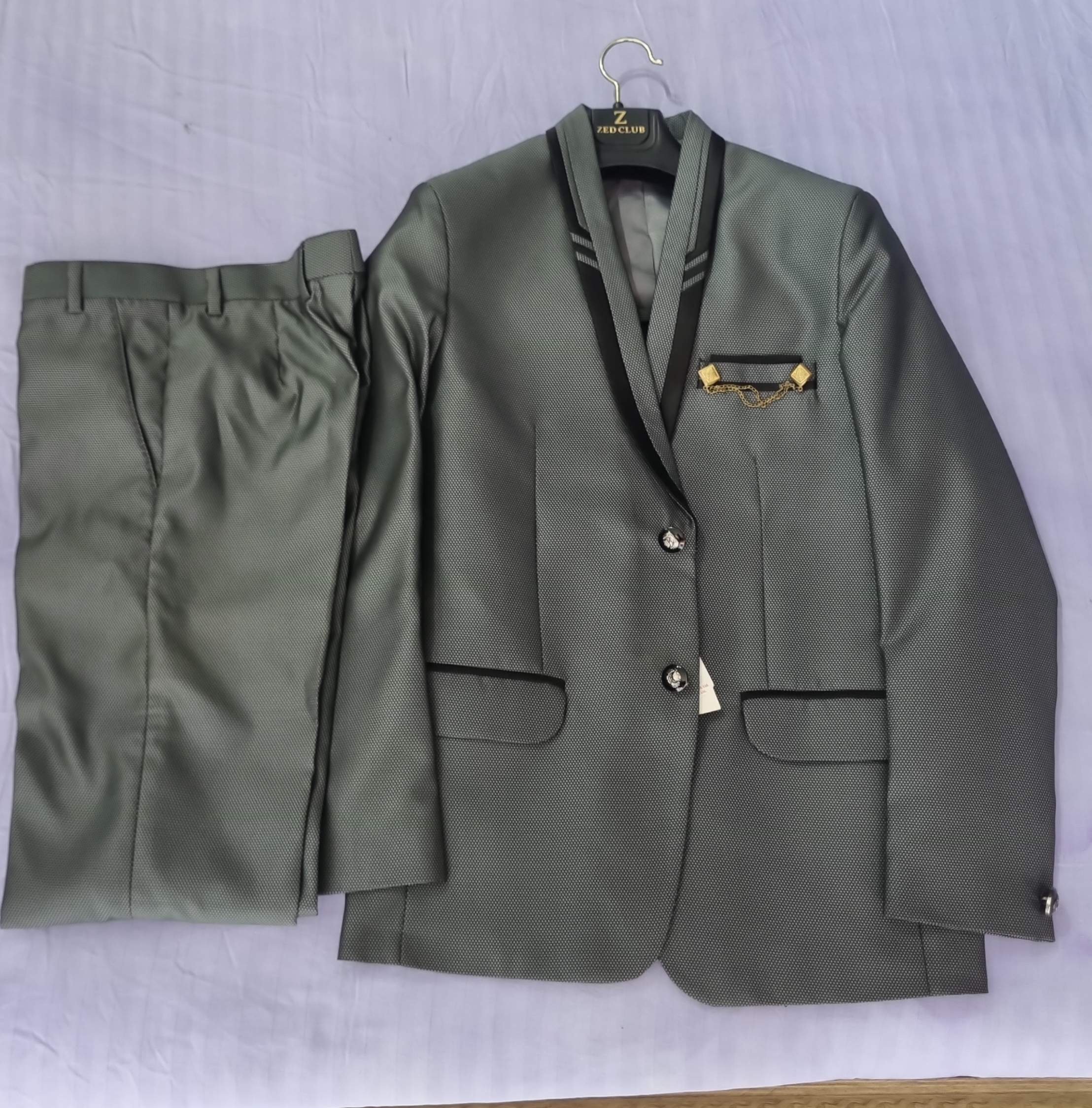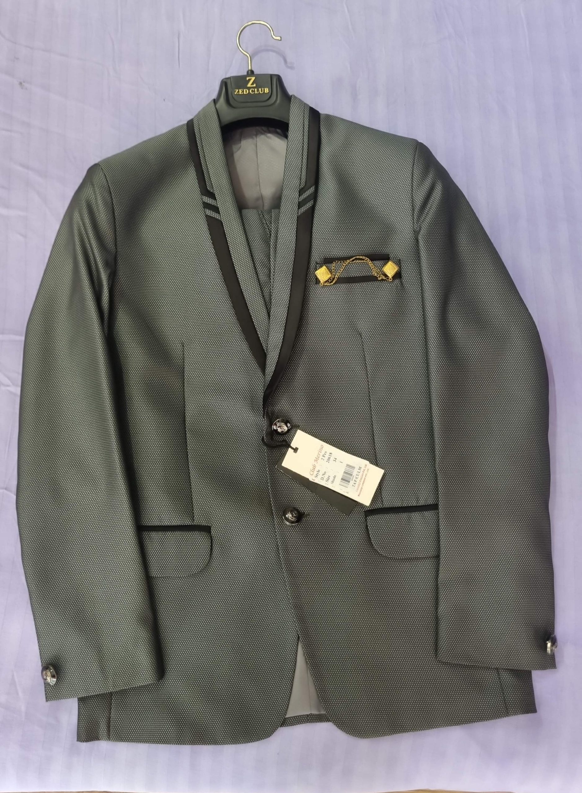Design:Subtle Diamond/Textured Pattern with Black Satin Lapel and Piping